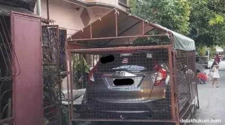 detaktekno, Jakarta – Pemilik mobil ini memarkir kendaraannya di bahu jalan. Agar aman, mobil tersebut di buatkan kandang yang terkunci rapat.