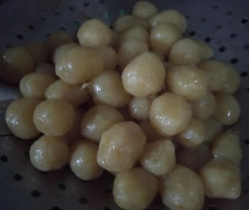 - Lalu buat bulat-bulat adonan langsung masuk kan ke dalam air di panci yang sudah mendidih, lakukan seterusnya hingga adonan habis.