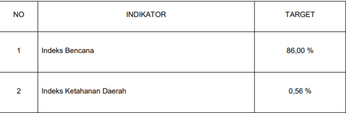 Indikator kinerja bisa dimaknai sebagai alat yang digunakan untuk mengukur pencapaian suatu target, baik dengan menggunakan ukuran kualitatif maupun ukuran kuantitatif. Dengan menggunakan indikator kinerja, suatu kinerja bisa dievaluasi apakah telah berhasil mencapai target yang telah ditentukan ataukah tidak. pada tahun 2025 BPBD mengalami perubahan indikator Kinerja yang disesuaikan dengan Permendagri Nomor 90 Tahun 2019 (Tentang Klasifikasi, Kodefikasi dan Nomenklatur Perencanaan Pembangunan dan Keuangan Daerah) dan Kepmendagri Nomor 050-5889 Tahun 2021 (Tentang Hasil Verifikasi dan Validasi Pemutakhiran Klasifikasi, Kodefikasi dan Nomenklatur Perencanaan Pembangunan dan Keuangan Daerah). Dari uraian diatas BPBD sendiri mempunyai Indikator Kinerja Utama (IKU) yang harus dicapai pada tahun 2025, diantaranya adalah :
