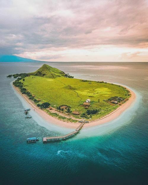 Selain panorama bukit dan rumput hijau yang luas, pulau ini juga memiliki pantai dengan pasir putih yang airnya jernih.